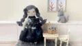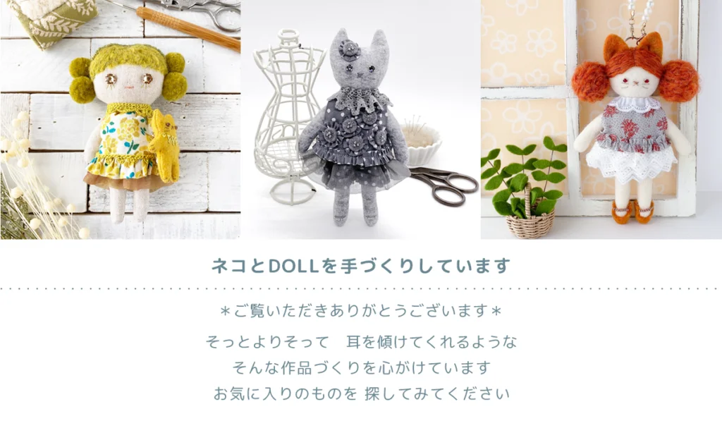 いろいろな道具を使って、毛糸のボンボンを作っています。作ったボンボンはドールの髪やフェルトネコのドレスに使ったりしています。